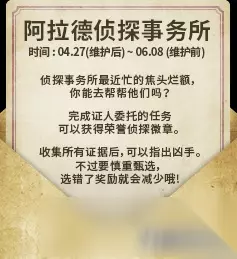 这是即将要出的新活动,可以获得一个名誉侦探礼盒。 名誉侦探礼盒中可以获得1个远古装备礼盒和1个神秘人皮肤礼盒。想要获得神秘人装扮的玩家建议多多关注官网活动,阿尔比悬案可以获得侦探礼盒哦。