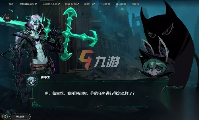 除此之外,我们可以通过对话了解到英雄国服名称为“薇古丝”。而关于薇古丝与佛耶戈,设计师谈到,佛耶戈本身力量虽然很强但还不足以造成大规模的破败,但遇到了从班德尔城前往暗影岛的薇古丝,薇古丝对佛耶戈很有好感(舔狗?),因此便使用自身精神世界的约德尔魔法对佛耶戈进行了强化。至此,佛耶戈得到了能够造成大破败的力量。所以,如果没有薇古丝的帮助,佛耶戈是做不到这些的。不得不说,这两位还真是“不是一家人不进一家门”。
