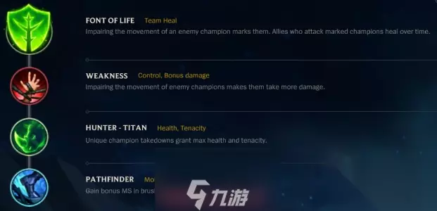 解析: (1) 在我们将余震的效果打出来了之后,坦度将会变得更加的高,让敌人更加的难以击杀布隆; (2) 需要注意的是,由于这个天赋需要对敌人造成控制效果才会触发,也就是说我们必须要靠自己的被动或者是大招来触发。 2、上单天赋选择:生命源泉