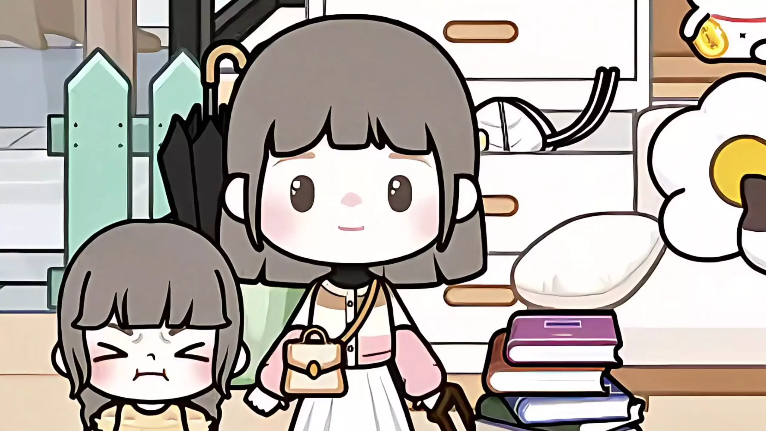 这是米加小镇世界里的日常场景,闷热午后,姐姐等待小可下课,小可拿到三好学生奖状后,和姐姐一起去买爱吃的手抓饼,展现了米加小镇的温馨日常。
