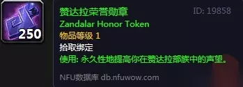 赞达拉的徽记需要玩家提供15枚赞达拉荣誉勋章。
