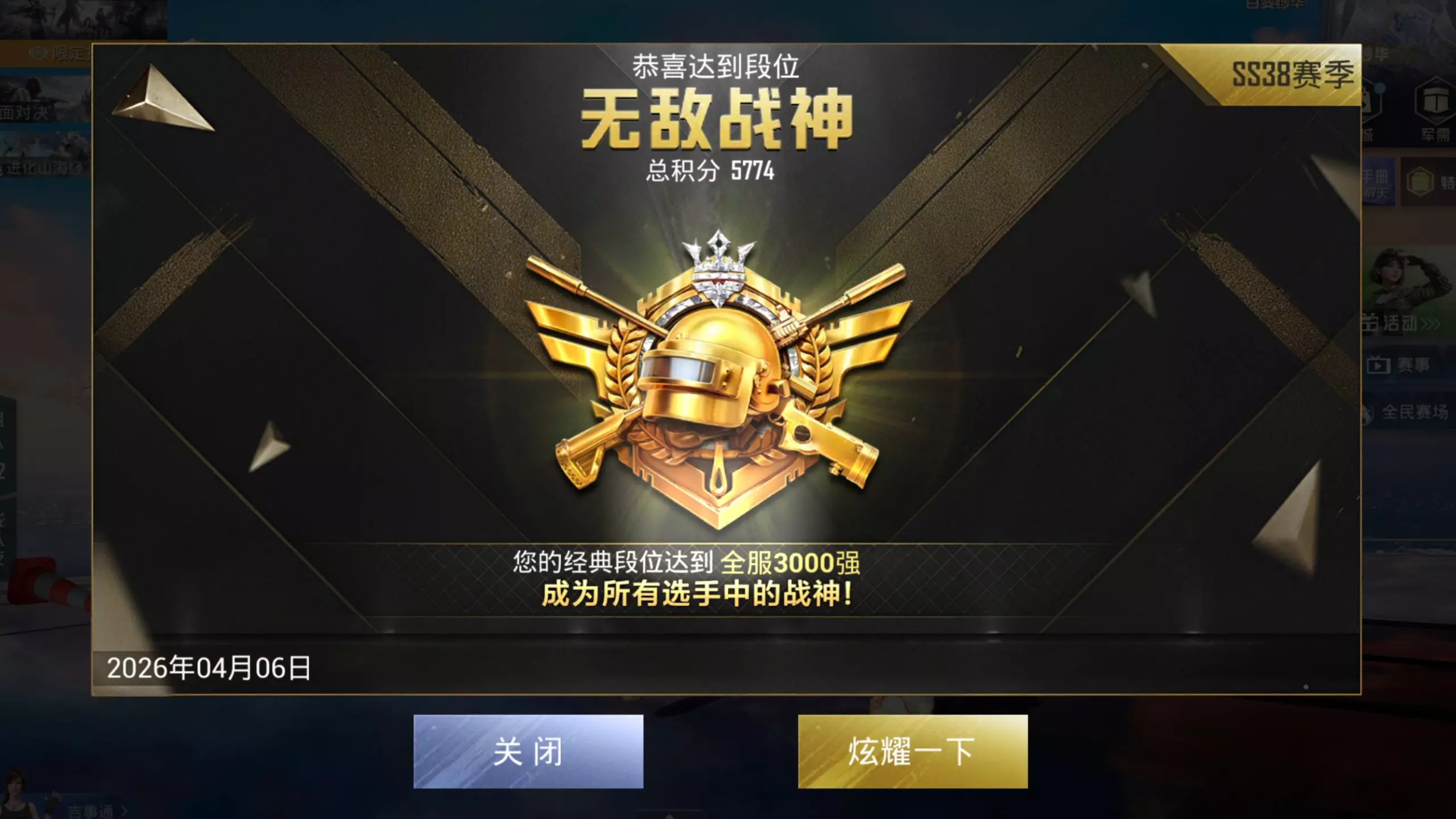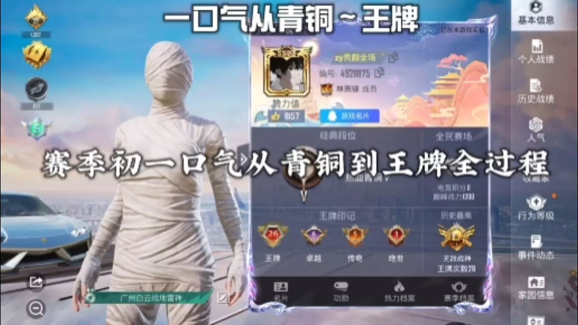 这是《和平精英》Ss38赛季的战神晋级内容,展示了普通玩家一天内冲击战神段位的全过程,包含对局中的战斗、抗毒保排名等操作,还有首胜加分、段位提升等晋级相关内容。
