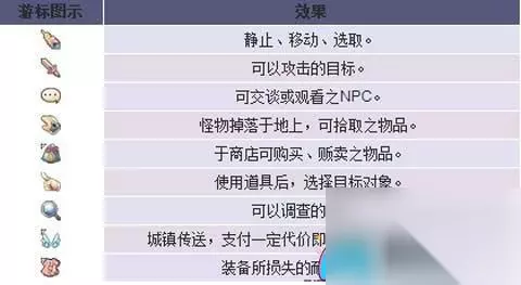 滑鼠操作 游戏的主要操作方式是通过滑鼠进行的,不论是移动角色还是施展技能等等,滑鼠都扮演着重要的角色。游戏中的滑鼠游标图示更是具有重要的意义,只要熟记这些图示的含义,在游戏中就能更快上手。 滑鼠功能 滑鼠游标的解释如下图所示: [插入滑鼠游标图示] 热键设定 预设热键 为了让玩家更方便地使用键盘按键来操作游戏的各种功能和界面,游戏中提供了许多预设的热键供玩家使用。