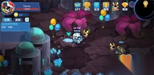 进来以后,如果运气好,你是可以直接看到别人弄出来的悠悠的,但是怎么自己弄呢?我们可以看到几个像泉水一样的东西,收集它,就可以召唤出悠悠!(注意:如果看到里面已经没有水了,但是出现了箭头,一样是可以采集的!)