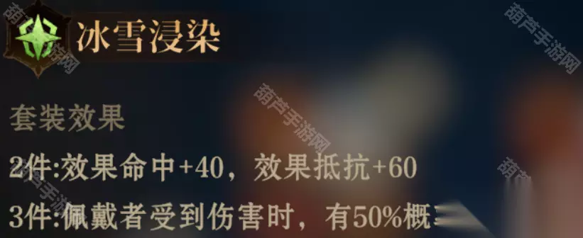 2件:生命+20%,技能急速+20 3件:佩戴者生命高于50%时,受到伤害降低20% 推荐使用:适合坦克防御 ⑤冰雪浸染
