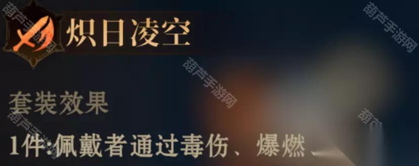 效果:开战时佩戴者获得攻击提升,提升值等同除佩戴者外,我方攻击最高英雄攻击力的20%。 推荐使用:适合副C或辅助C ②炽日凌空(武器+头盔)