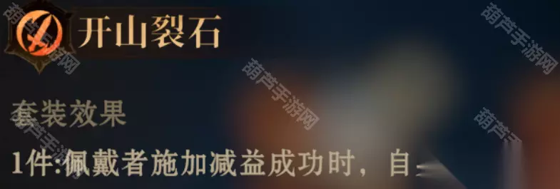 效果:佩戴者成功施加控制状态时,如目标已处于负面状态,则减少其10%威能。任意目标10秒内仅可受到1次该效果。 推荐使用:适合控制效果的辅助打PVP。PVEboss都免疫控制 ④开山裂石(手套+衣服)