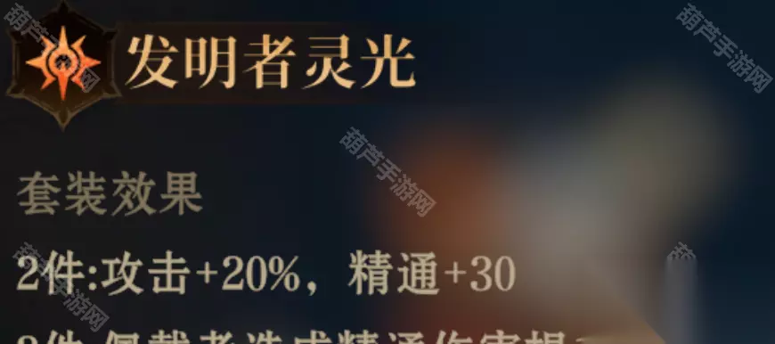 2件:攻击+20%,重击率+10% 3件:佩戴者释放战技和威能技时,获得持续10秒的8%造成伤害提升,最多叠加4次 推荐使用:适合高频率释放战技的输出,冰拳好像就能高频率释放战技吧 ②发明者灵光