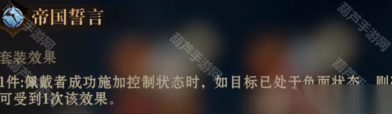效果:佩戴者通过毒伤、爆燃、闪电链造成伤害提升35%。 推荐使用:完美适配S2新英雄 ③帝国誓言(武器+头盔)