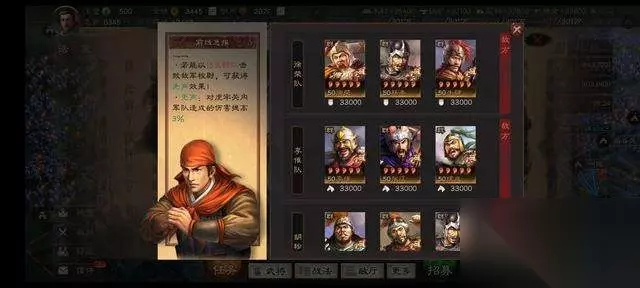 3. 副本队伍强度 虎牢关的副本,基本都是群阵营中的西凉兵团,包括了吕布的八健将、李肃、樊稠、徐荣等一批全新的五星将,携带的也都是新战法。从队伍特点看,以武力输出为主,兵力都是60000以上,且为满级满红队伍。 根据测试服的数据来看,满级45以后,打这些守军并不难。难点在于兵损高,且补兵非常困难,一来一回,将浪费大把时间。