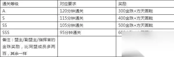 2. 副本奖励 这是大家最关心的方面,副本奖励保底一个方天画戟,建议在当前赛季结束攒够功勋,兑换无双。金珠奖励随着通关评价,数值有所不同,如下: 值得注意的是,该副本的奖励,属于附加奖励,并不是赛季奖励。对于参与攻打虎牢关的玩家来说,也算是不错的。