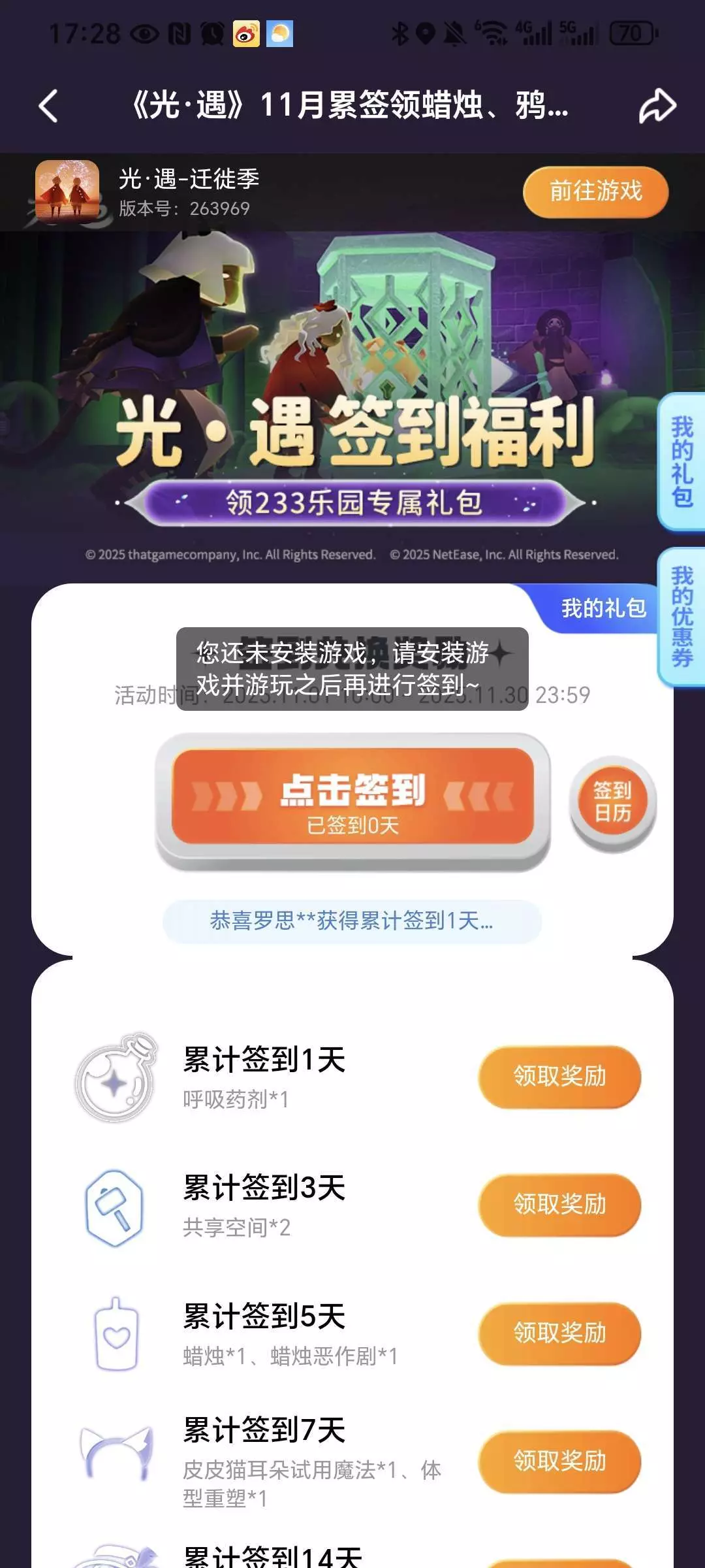 光遇玩游戏签到不了