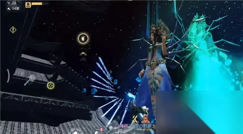 飞到136里的高度后,会在前上方看到一个发着绿色幽光的台子,这里就是西王母的栖息之所,我们飞上去。