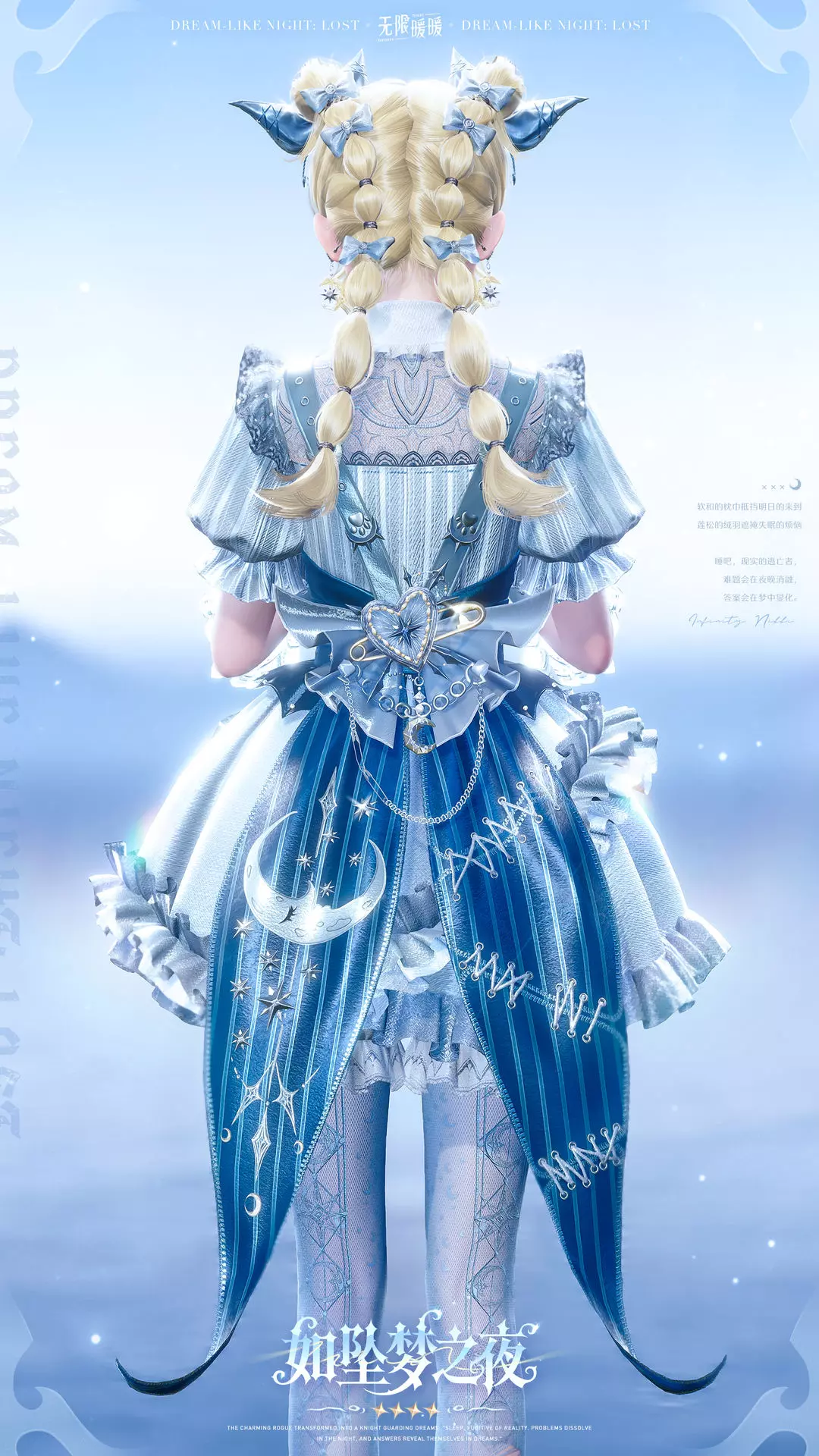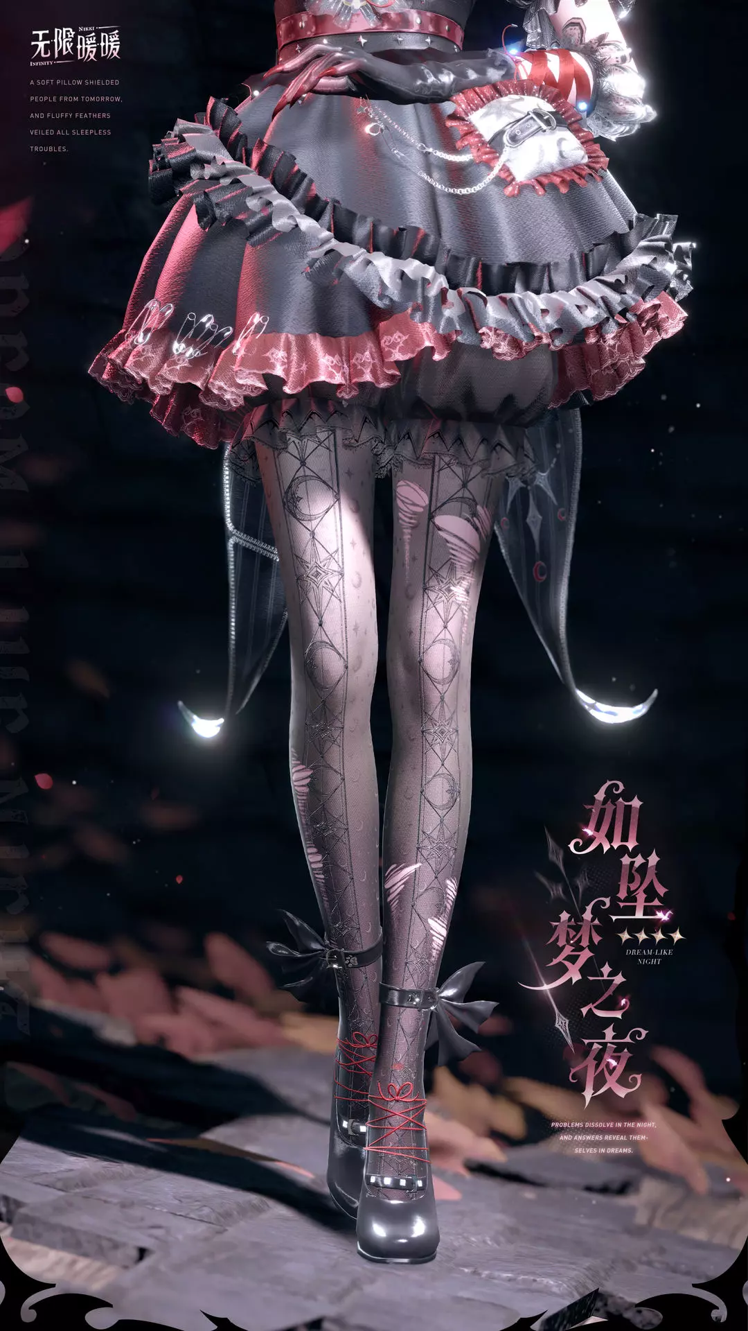 「如坠梦之夜」进化后为套装「如坠梦之夜·决意」。套装焕新完成后可获得「如坠梦之夜·迷途」。