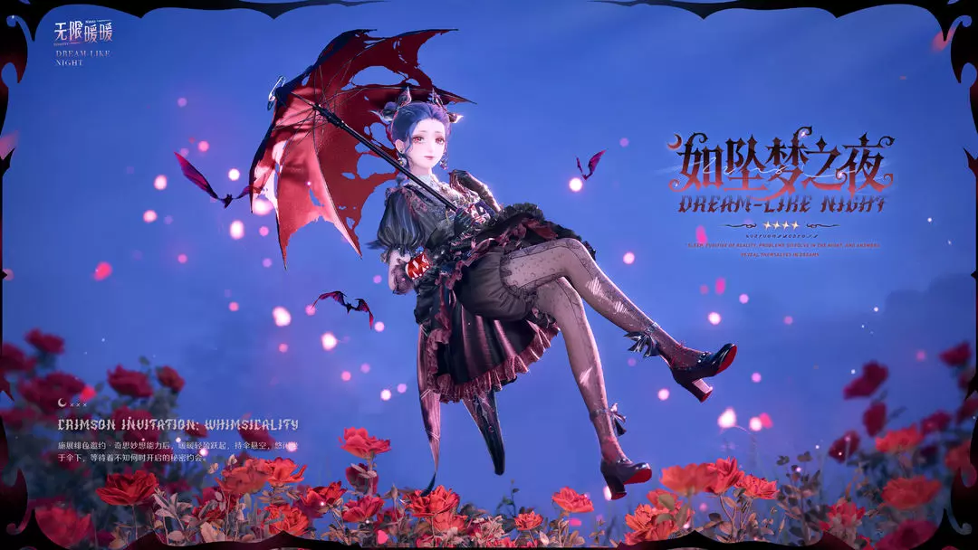 「绯色邀约·奇思妙想」:高高跃起,翩然旋开伞面,于暗影的嬉笑间赴一场绯色邀约。