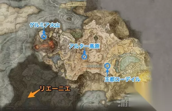地图碎片位置 下图蓝色标记地图碎片位置自上至下分别为格密尔火山、亚坛高原、王城罗德尔;橙色标记区域为湖之利耶尼亚。 地图碎片「亚坛高原」可以从迪可达斯大升降机沿路往前走,然后在岔路口往北走看到;地图碎片「王城罗德尔」则是在上述岔路口往东走可以看到;地图碎片「格密尔火山」位于熔岩区域,路线比较复杂。具体位置请参考下文。