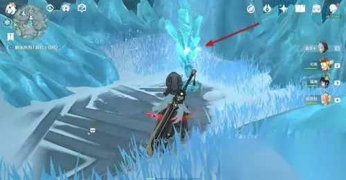 6、利用周围的深赤之石击碎图中冰柱便可以获得第一个碎片。