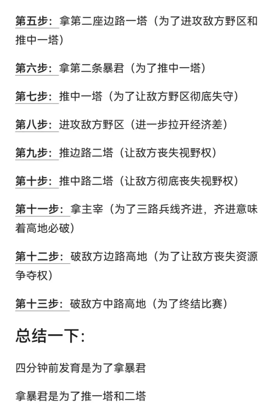 第十二步:破敌方边路高地(为了让敌方丧失资源争夺权)