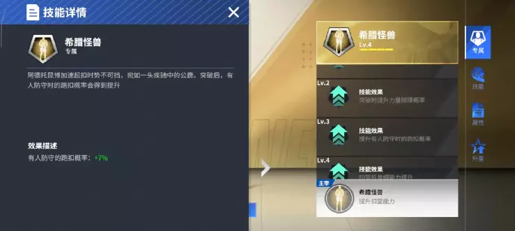 ● 3级专属:有人防守时跑扣概率增加7%,陷阵之志,一往无前!有人防守又何妨!这就是希腊怪兽的一腔豪情,有人防守更是字母哥大展宏图的表演舞台!