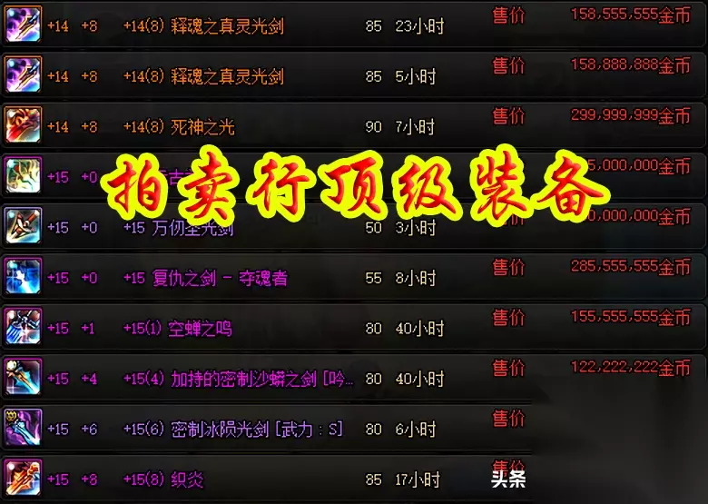 顶级装备 而现阶段游戏中可以交易的装备,价格最高也不会超过8亿游戏币,这个价格虽然让很多玩家都望而却步,但是这个价格却并不是DNF游戏中最高的装备价格,准确来说,最高装备的价格并非出现在当前游戏版本,而是在60版本。 在60版本时期,那时候游戏中最顶级的装备,还集中在粉装和传说装备,而这些装备还都是可以交易的,这也导致了一大批极品高价装备的出现,就比如作者曾经看到的一个价格2亿的梵风衣。