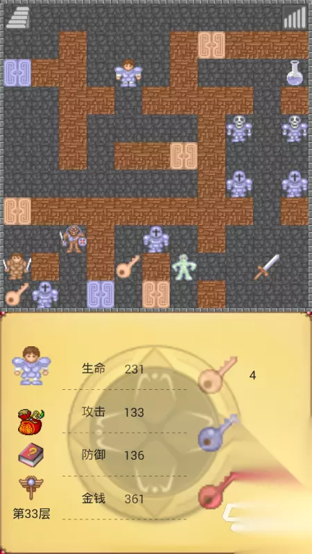 闯关爬塔的玩法真的是不简单的,玩家们刚开始还是有一定的战斗力的,不过被魔王击败,你们丢失了一切的资源,全部都是要重新开始的,《魔塔50层》这款手游一开始就能难倒不少的玩家,一路上我们要花费血量来击败各种敌人,获取钥匙和药水,甚至是一些武器道具也不能错过,让你们的角色更强才行。 高速下载 普通下载 优先233乐园APP下载 2、《魔塔勇闯古堡》