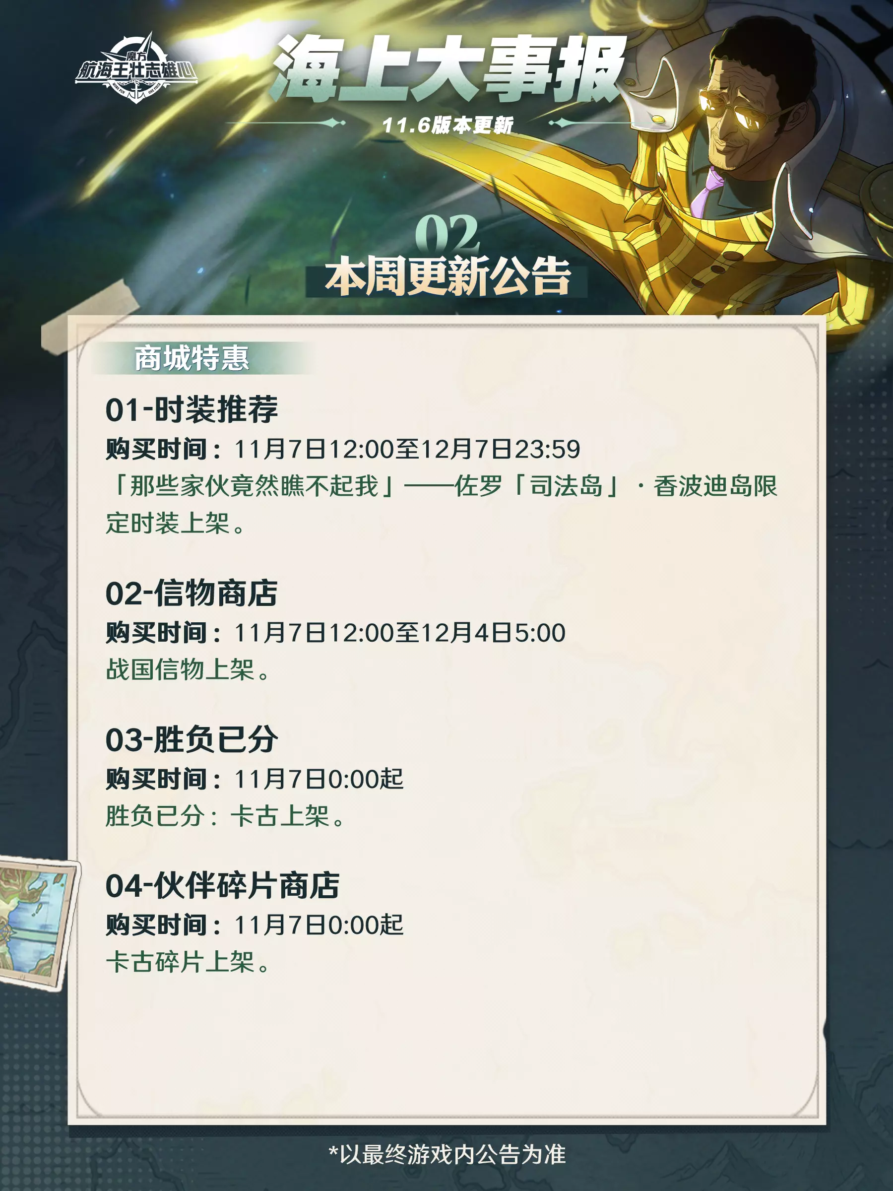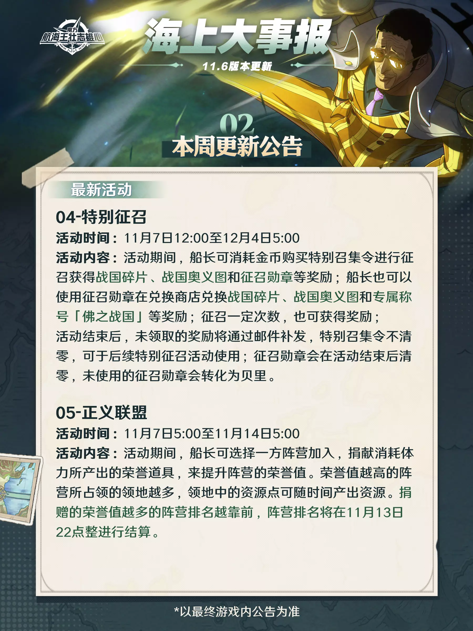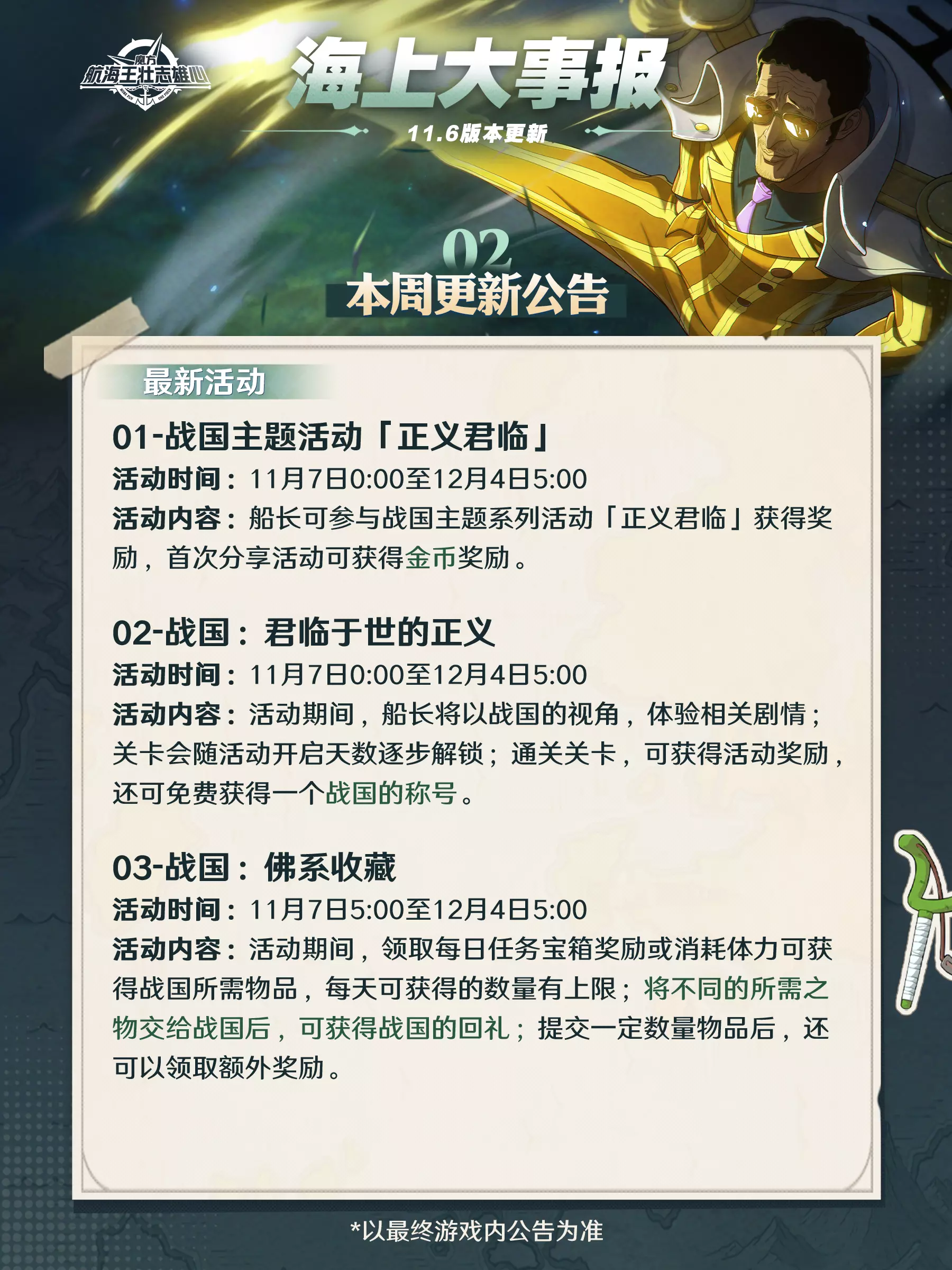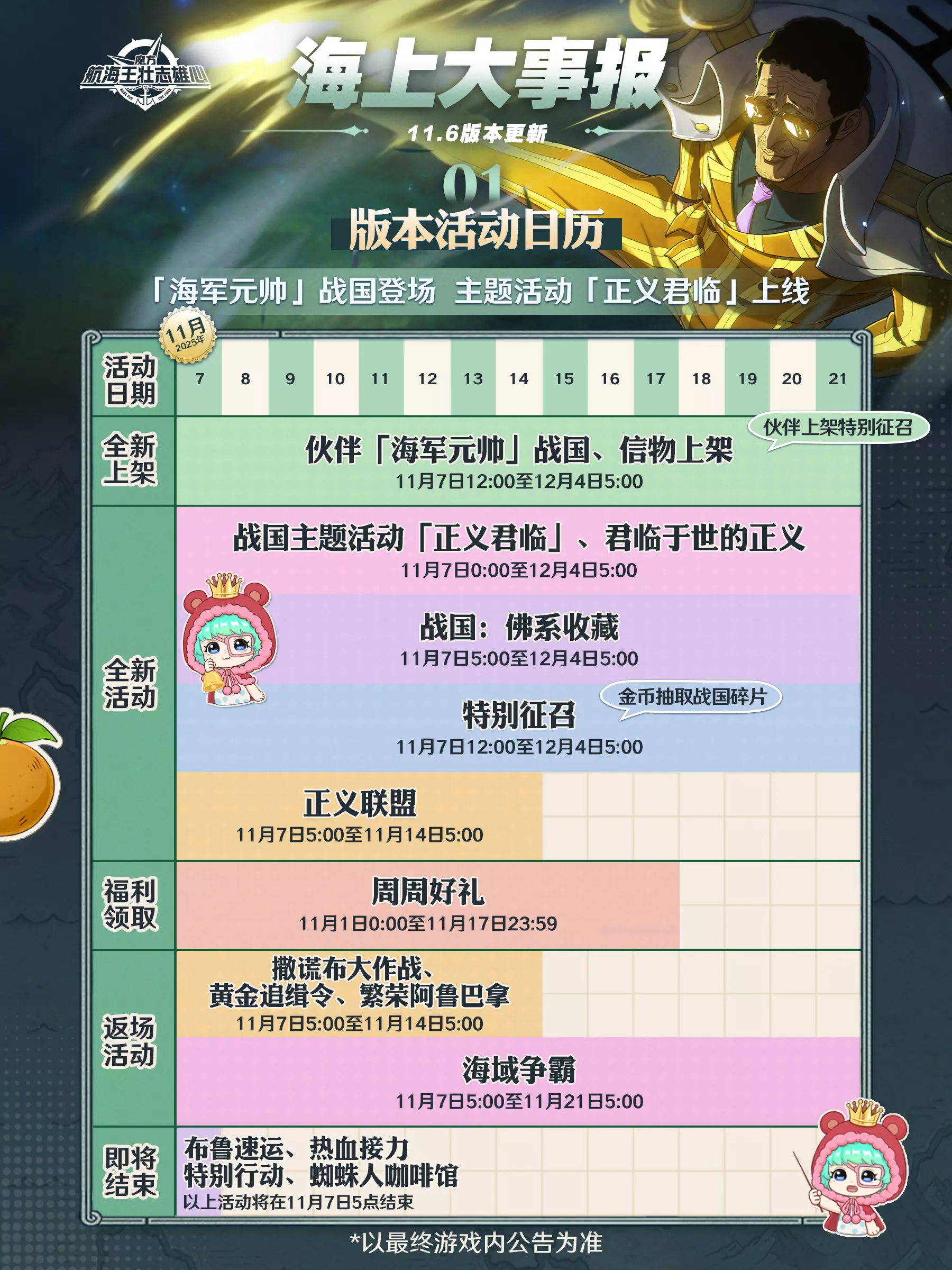 海上大事报|新伙伴战国11月7日登场