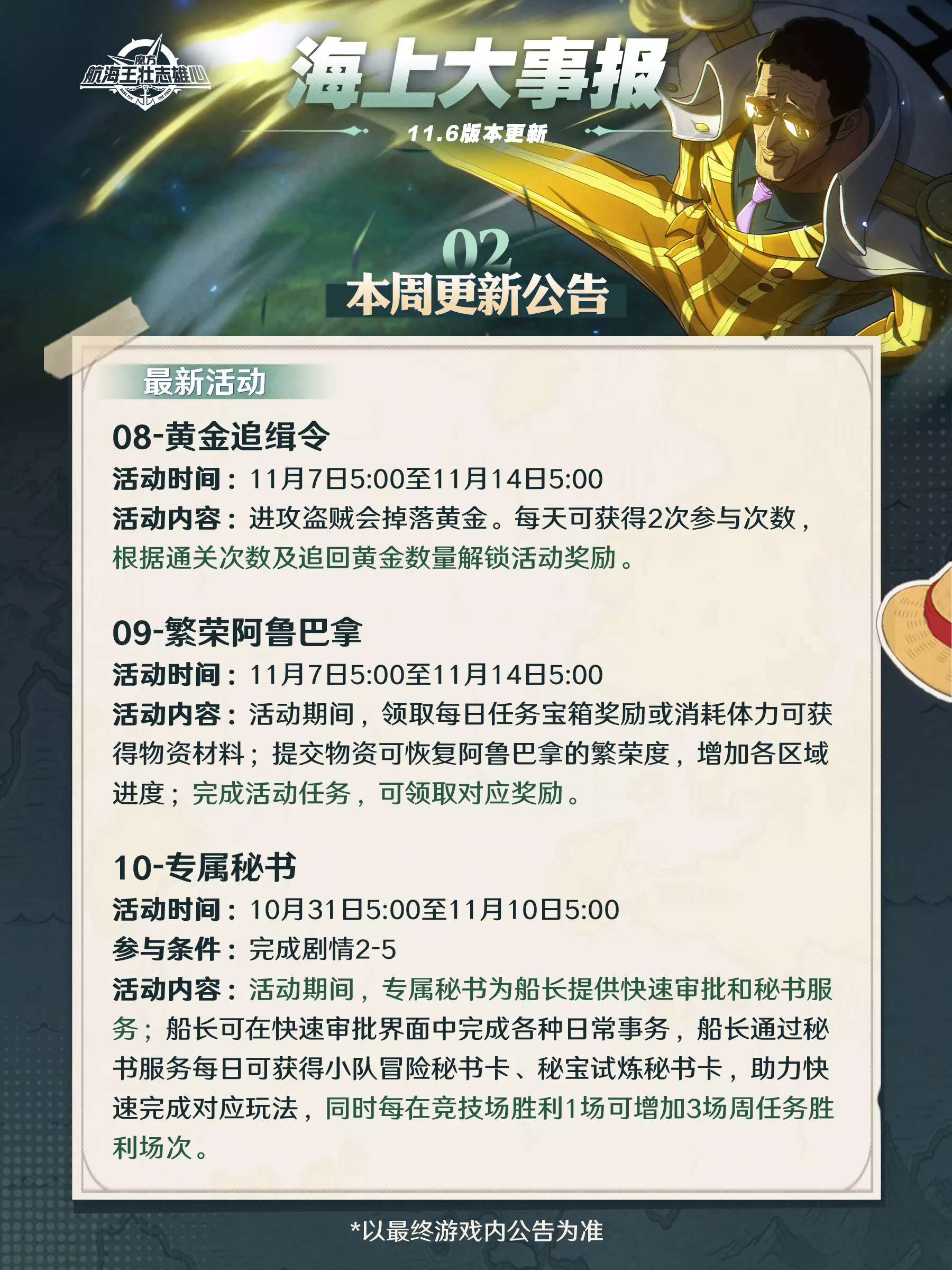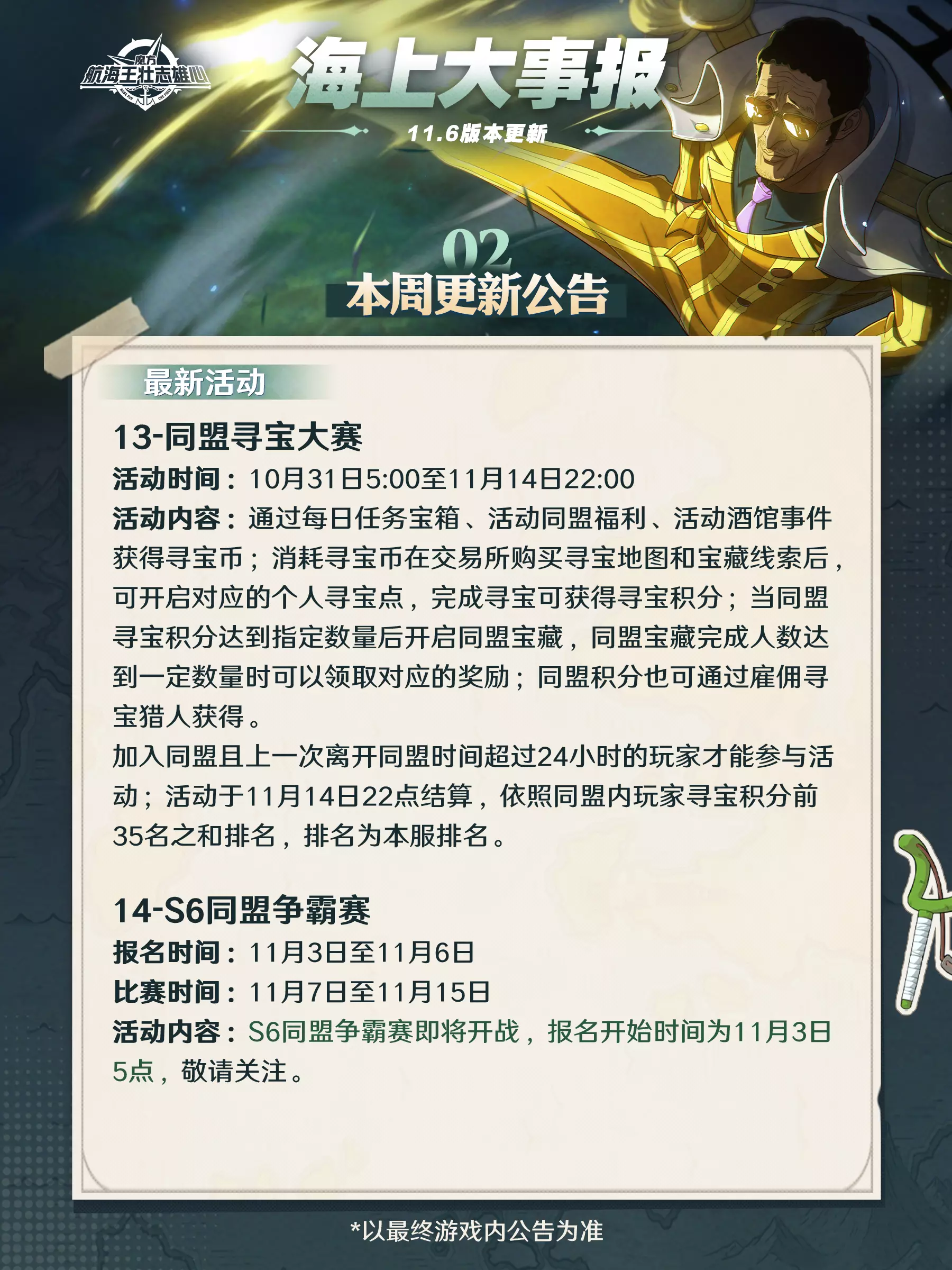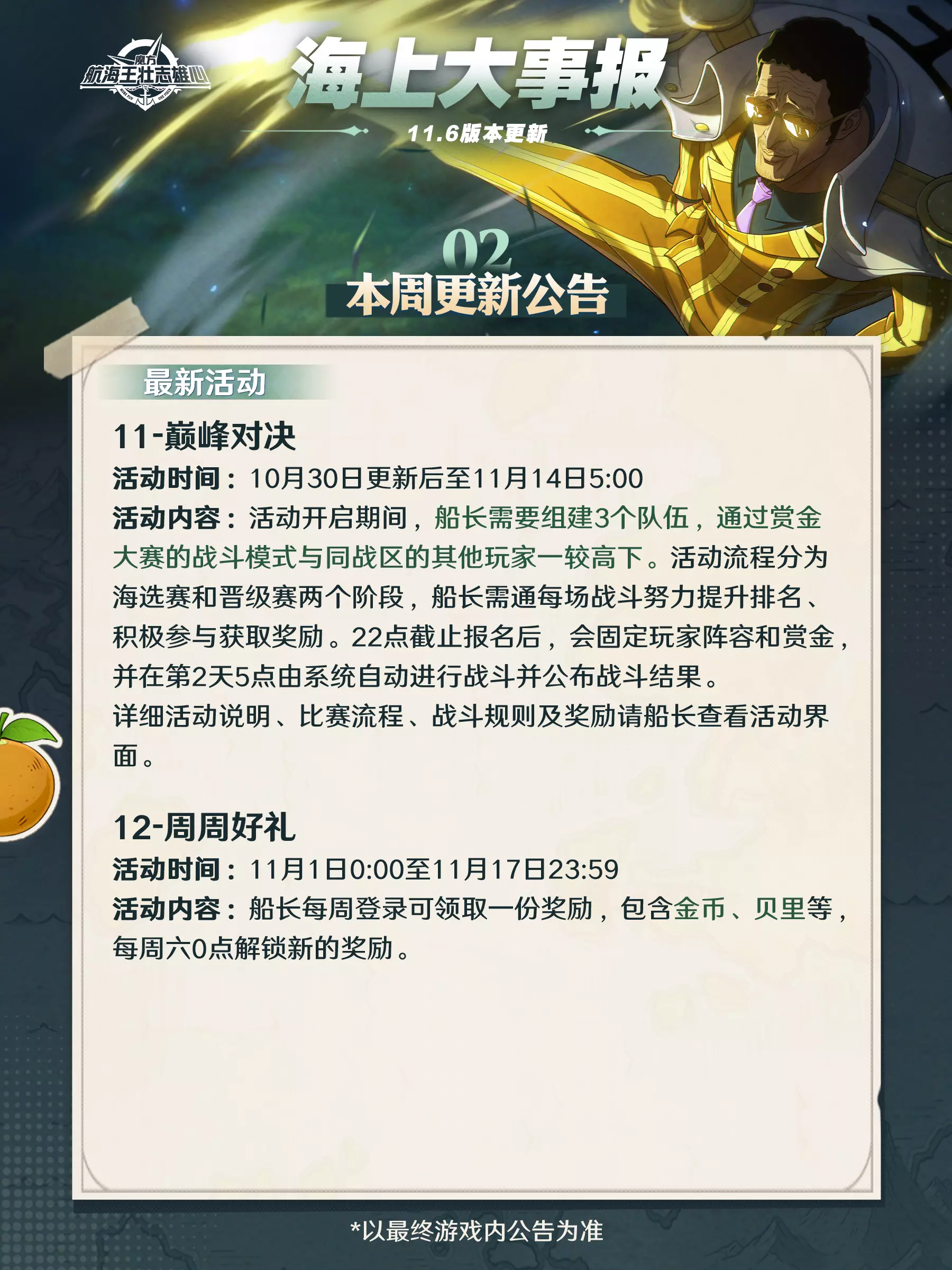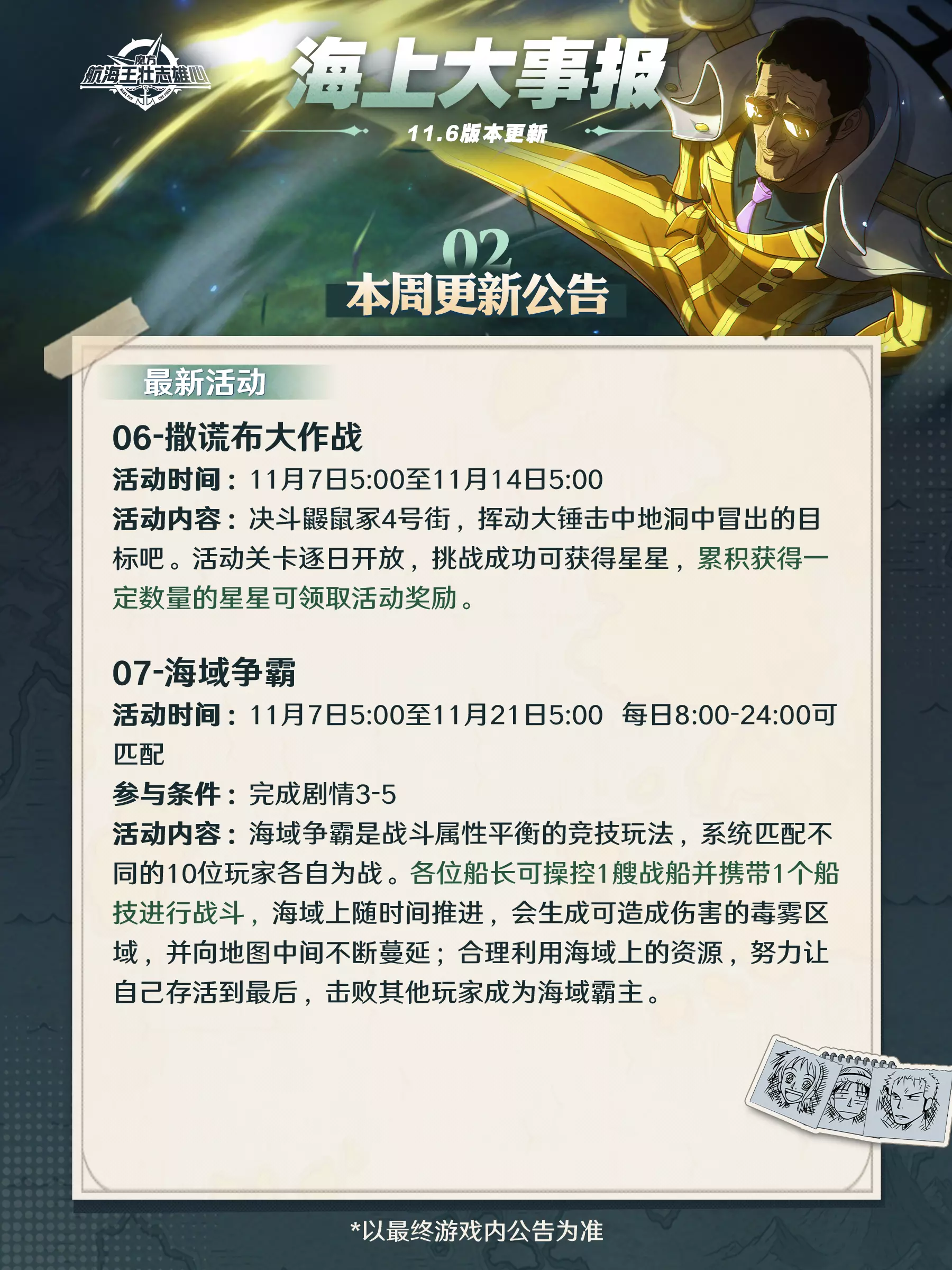 海上大事报|新伙伴战国11月7日登场