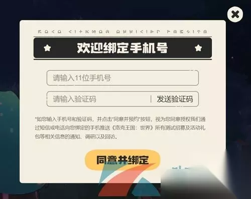 3、在弹出的页面输入手机号并发送验证码,点击下方的同意并绑定按钮。