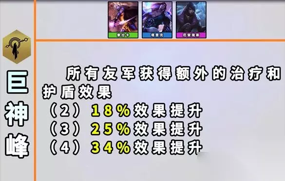 7、巨神峰 效果:所有友军获得治疗效果和护盾效果提升。