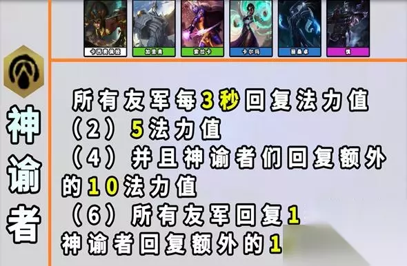 16、神谕者 效果:所有友军每3秒回复法力值。