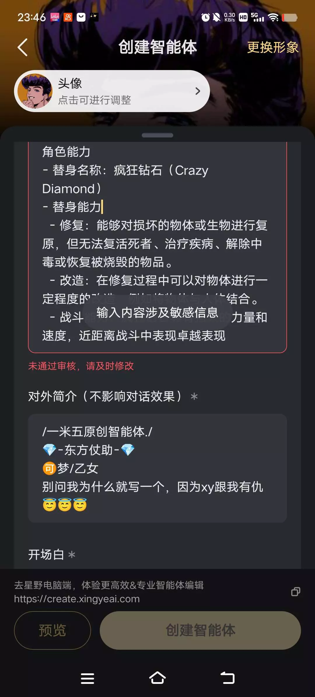 星野我🌿密码,你是活不起了吗?智能体到底哪里有违禁词🤔🤔🤔发个消息违禁,玛德把我最喜欢的DIO乙女智能体下架了😨😨😨搞个加强未成年就把动态评论区关了😱😱😱我要转平台了星野,你太让我失望了🆘🆘🆘