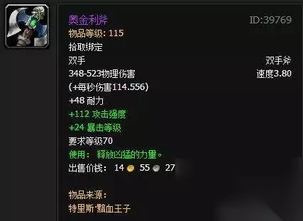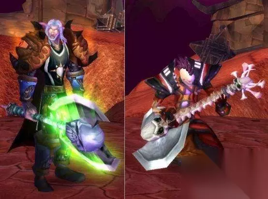 奥金利斧 出处:3.0天灾入侵,卡拉赞隐藏boss特里斯·黯血王子掉落,国服未经历此事件,直接绝版,只能由黑市获取。 向奥金斧的致敬!变成一个拿着吉他独奏的亡灵,身边还会爆发出绿色火光,高富帅的代名词。