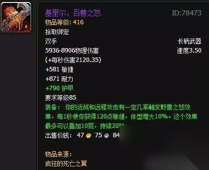 基里尔,百兽之怒 出处:巨龙之魂副本死亡之翼掉落。 俗称变大杖,效果叠满后体型可变大100%,想象一下变大100%的一头大屁股熊!