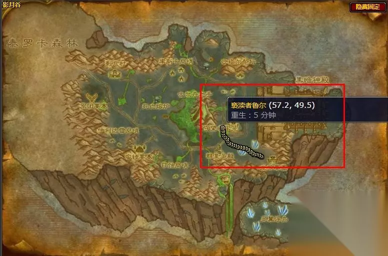在游戏《魔兽世界怀旧服》中,亵渎者鲁尔位于影月谷,是一位会在地图上移动的71级稀有怪。亵渎者鲁尔会从坐标(57.2,49.5)处出发,一直走到坐标(67.3,60.7)处停止并返回。玩家需要沿着路径来找到他。