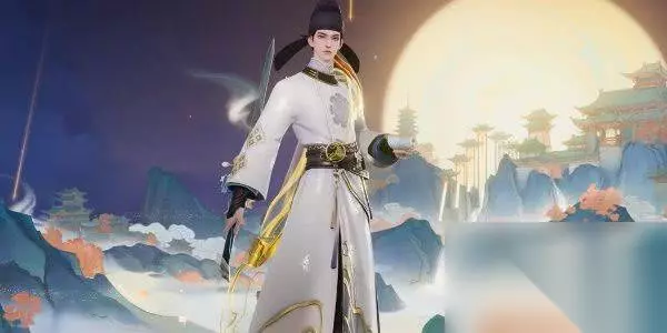 二、角色设计 整体设计以“明月”为设计起点,致敬李白,抒写他追寻了千年的明月光。以象征“明月光”的月白色为主色调,打造了一个头扎幞头、身着圆领袍衫、脚蹬长靿(yào)靴的盛唐时期的青年诗人形象。整体设计上,以盛唐的服饰为基础,结合他与明月相关的诗词进行幻想化的演绎——谪仙醉月,三分啸成剑气,七分酿了月光。