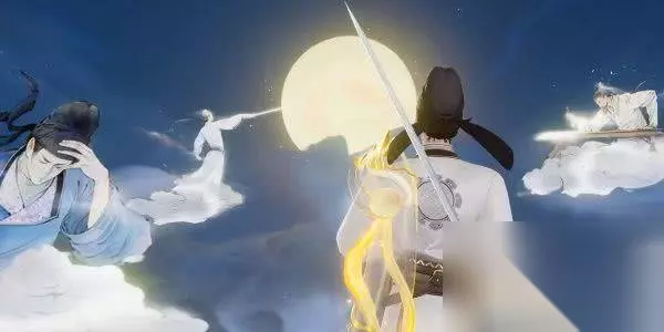 3、二技能: 执剑]划出—方山水画境,—轮明月与楼i阎映照其中,画境四周群山环绕,“皎如飞镜临丹阙,绿烟灭尽清辉发"显现其中,熠熠生辉。