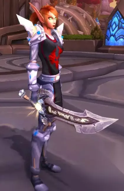 单手剑效果 这是奎尔戴拉的单手剑。玩家甚至可以用它装扮成莉亚德琳。不能说一模一样,至少有99%相似。 好了,WLK怀旧服中将会出现的重要武器奎尔戴拉就介绍到这里了。如果你在游戏中遇到任务物品“断剑柄”,不要放过它,无论你保留它还是卖掉它。吃排骨是不错的选择。
