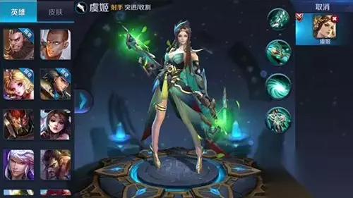 技能介绍 被动技能-【树神护佑】 脱战后,树神之力加持虞姬下一次普攻为树神束缚,并使这次普攻拥有额外的攻击距离和物理伤害,树神束缚对目标造成1.5秒的90%的巨额减速。 技能1-【楚歌起】 虞姬蓄力后,发射一支携树神加持的强力弩矢,弩矢对飞行路线上每个敌人造成等量的物理伤害。 技能2-【大风来】 大幅增加虞姬的移动速度,期间能闪避所有的物理攻击。 技能3-【阵前舞】 虞姬冲向目标使敌人短暂晕眩,然后跳到自己最大攻击距离,过程中对敌人快速普攻2次,每次造成高额的物理伤害 皮肤展示
