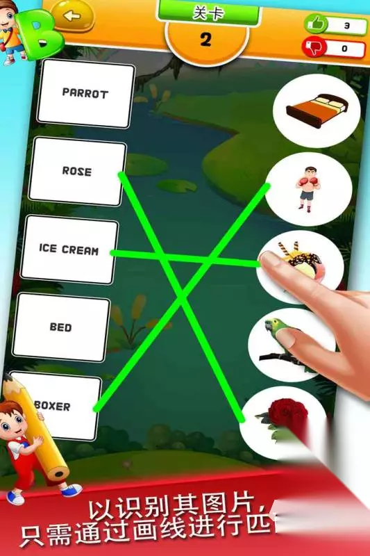 不仅考验眼力,更挑战手速,随着关卡推进,障碍物、限时挑战和特殊道具的加入,让每一次点击都充满策略性。路径规划至关重要,精确计算连线角度才能在复杂布局中找到最佳消除方案。丰富的关卡设计带来不同玩法变化,特殊模式更增添挑战乐趣。40多种萌宠形象各具特色,细腻的动画让消除过程更加生动。 高速下载 普通下载 优先233乐园APP下载 2、《英文连连看》