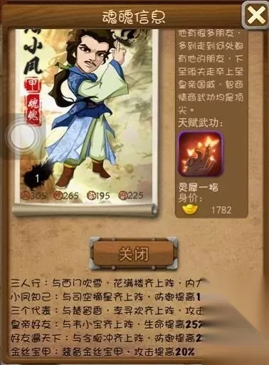 缘分: 小宝血缘——无视 三人行内缘——无视 令狐防缘=25% 三代表楚留香·李寻欢攻缘=28%(目前第一) 司空防缘=18% 金丝甲攻缘=20% 两个废缘,四个好缘,想比他更好不是没有,但是很少,很少…… PS:为何司空也是好缘,一个司空可以提供陆小凤跟楚留香两个18%的防缘,三代表必上司空七星,所以这算一个好缘 整体分析:48%攻缘目前震古烁今,位列第一,43防缘+7.5防成长,才是真正恐怖的地方 横向对比今天之前的防守第一人黄蓉:成长不如黄蓉,黄蓉防缘略好60%,但攻缘差的太多了,想碾压陆小凤得上黄药师配缘,可为他一个人占领一个七星位是否值得尚需考虑。 首先:防缘+成长略胜,攻缘+成长大不如; 其次:费丹量相差甚多,一个极省,一个极费 最后:天赋武功一个24%格挡,一个打狗,不提了…… 综合防御水平,陆小凤略胜一筹,整体水平应与黄蓉持平,毕竟郭家已经出齐且黄蓉成长占优,不考虑费丹的话成长也是一大优势 长远来看,三代表+剑神应该是目前绝配,郭家+剑神,杨家+剑神,城管+剑神均不如。 血战分析:到底小凤适合血战大神们么?首先无视技能。不是buff技能都不靠谱。材料所需。材料一,令狐冲,有钱跳小凤没可能没有令狐吧。材料二,金丝宝甲,这个先前没跳的有点难度。材料三,小宝玩久了,自然有。不用急。材料四,小香和小李,还没出,等下给多个数据,材料五,西门跟花满楼。加内,血战人士直接除开。材料六。司空,加防。一般都有他。材料七。10000大丹丹。材料八。葵花宝典,小无相功各一本。好了,可以计算了。下面数据没加入七星属性加成,跟掌门决。血3300,功3850,防3100,内500。带真气10级,金刚千古灭世,装备,3段甲武860功,3段金丝660防,3段乙饰品,1300血。以上是七人组数据,带新真气更牛。三个代表缘开了的话随便4300功,心动了吗。