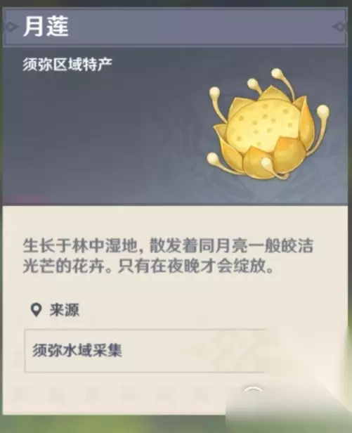 原神月莲获取位置 获取方法: 须弥水边采集获取 暂无购买地点 月莲采集位置: 月莲为须弥区域特产,生长于林中湿地,采集方便。截至3.0版本大地图最新数据,提瓦特大陆的月莲一共74朵,采集后48小时刷新。 一、维摩庄南-降诸魔山区域点位