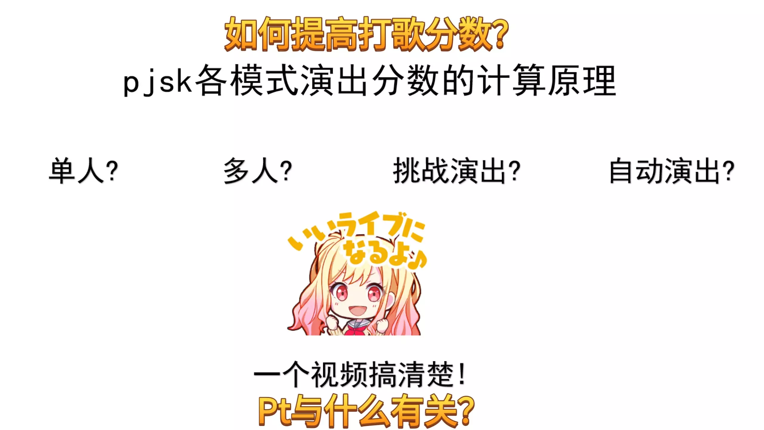 影响pjsk分数的因素有很多,因此做了一个视频来系统地整理这些概念 视频篇幅有限,有很多细节没有讲到,更详细的内容可以查看@xfl03老师的攻略专栏 查询各模式…