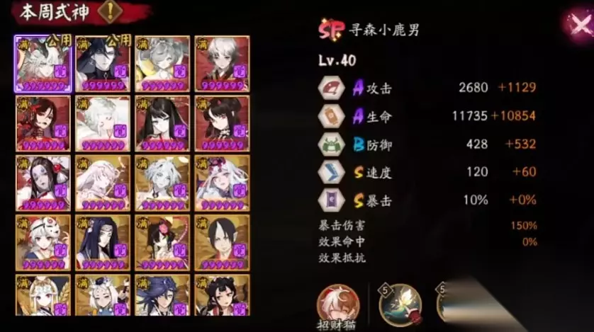 以上就是对阴阳师sp小鹿男御魂用什么的一番介绍,目前来看抵生、轮入道、招财猫这些都是不错的,轮入道有机会让鹿2次出手,招财猫则是自己拉条推条来控场,大家可以根据自己的练度情况选择合适的给小鹿搭配。