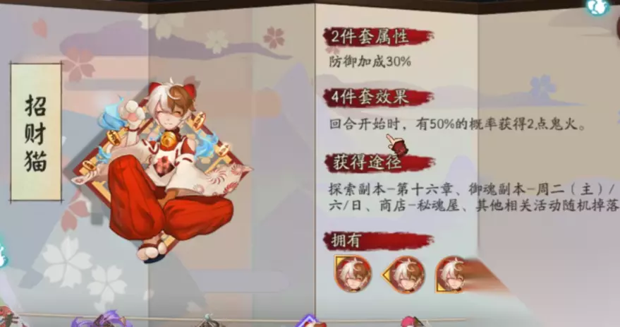 246速抵生、轮入道、招财猫这些也都可以,前文也提过了120的基础速度已经算是高速式神了,2技能的需要他有很高的效果抵抗,可以源源不断的拉条效果,因此需要速度更快,抵抗更高。