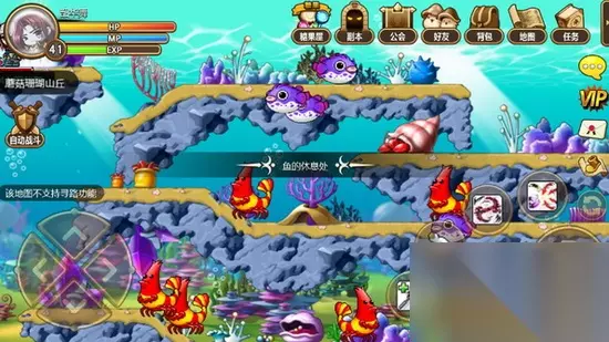 冒险岛隐藏地图怎么进?冒险岛隐藏地图在哪里?冒险岛手游中有着一个隐藏地图小伙伴们发现在哪里了吗?让小编来告诉你吧。 问:冒险岛手游隐藏地图在哪里? 答:想要进入隐藏地图,首先就是要知道,这些隐藏地图分别在哪里了。点上面的传送门去看看每个地图的隐藏地图门口都在那些坐标点。 有了坐标点,进去就容易多了。站到正确的位置之后,大家只要按下方向键就可以进去了。 冒险岛手游开发设计的还是非常的不错的,在每张地图中都设置了一些小的隐藏地图,在隐藏地图中有更多好玩的有趣的东西在等着大家前来寻找。但是既然是隐藏地图,那就不会那么容易被大家找到了,不过没关关系。小编本着为人民服务的宗旨,会负责帮小伙伴们把隐藏地图全部挖掘出来的。下面就先送上水下世界隐藏地图。 1、首先,小伙伴们要走到水下世界区域图中的蘑菇珊瑚山丘小地图。如下图: