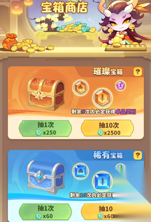 2、真言符箓,不推荐各位天命人购买,除非是氪佬或者暂时很需要魔宠进行推主线,建议各位天命人花在抽取神品魔宠身上。 三、宝箱商店 1、天命人大大缺灵石可以考虑花费一定仙玉购买璀璨宝箱,不推荐购买稀有宝箱。