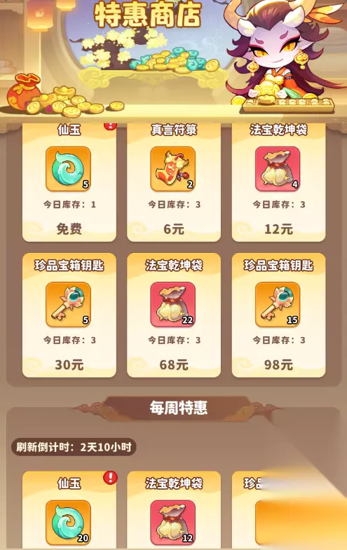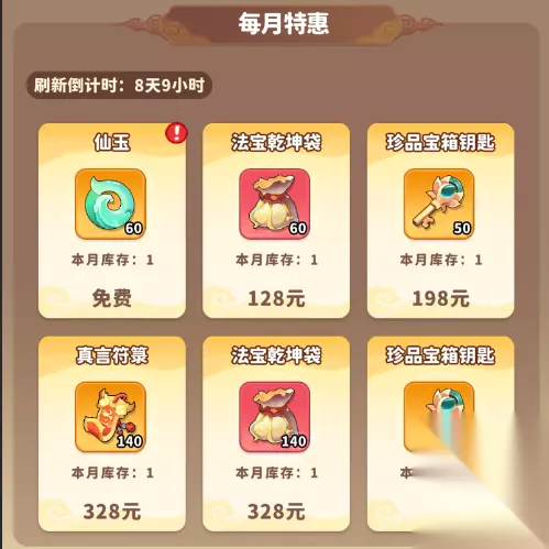 2、法宝乾坤袋、珍品宝箱钥匙,每月特惠购买的性价比最高,其次为每周特惠。不推荐各位天命人购买每日特惠,同样价格购买战令获取的资源更多。