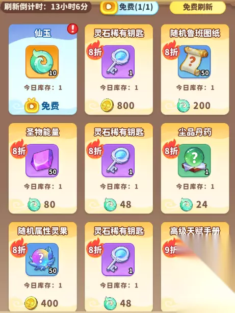 3、灵果和灵石钥匙都是前期比较稀缺的道具,后期需求量也不低,在低于八折下十分推荐兑换,八折可以根据养成情况考虑。