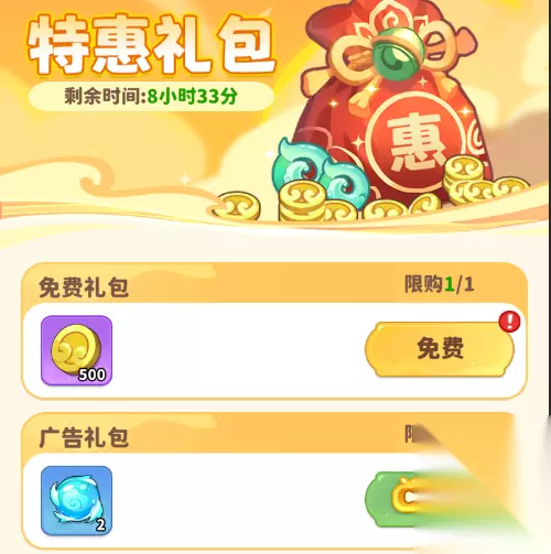 六、特惠礼包 1、每天的免费礼包和广告礼包可以白嫖材料,各位天命人不要忘记领取哦