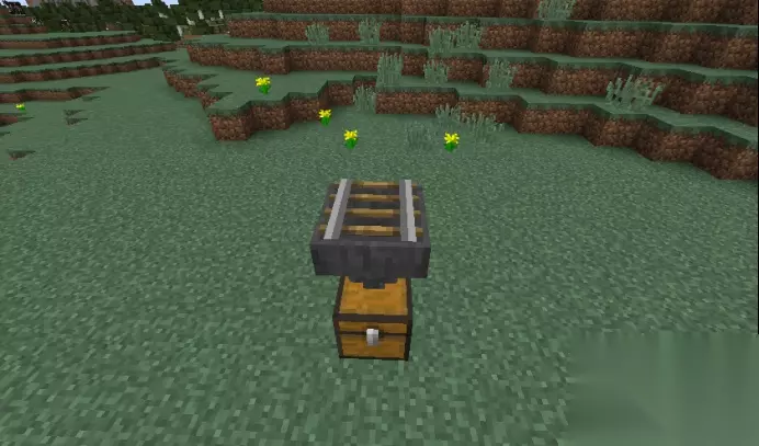 第四步:在矿车上放置一个方块以放置雪傀儡